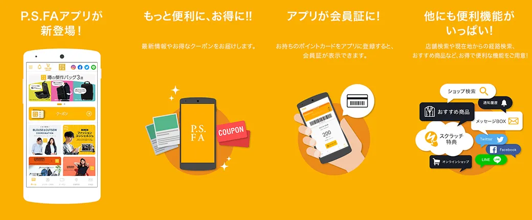 The official P.S.FA app can display membership card, use the online shop, and see the latest news.