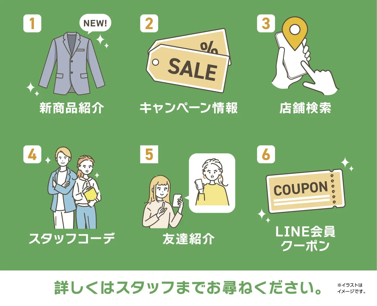 We will deliver various useful information such as introductions of new products and advantageous campaigns.